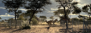 Land is fenced, some camps are fenced with game fencing, with roaming game, such as Giraffe, Oryx and Kudu to name a few.
