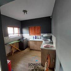 The heart of the home is its open-plan kitchen, dining, and lounge area, thoughtfully designed for connection and ease. The kitchen includes a handy scullery area for added functionality, while the built-in fireplace in the lounge corner adds charm and warmth to the home’s living space.